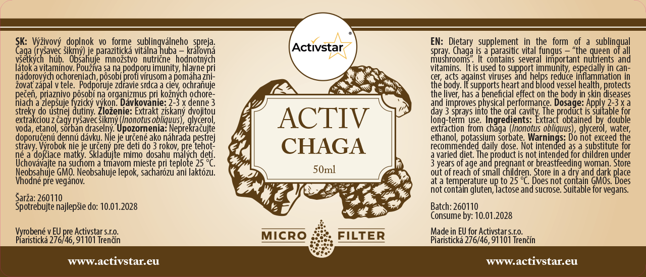 Nutritional supplement in the form of a sublingual spray with an extract of chaga (chaga), known as the queen of all mushrooms. It contains a variety of valuable nutrients and vitamins.