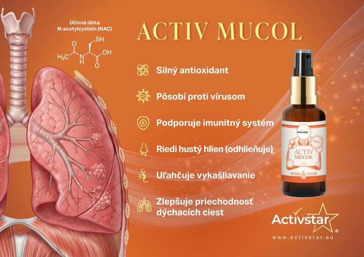 Activ Mucol is a nutritional supplement in the form of a sublingual spray that helps thin mucus and promote expectoration. It is suitable for problems associated with both upper and lower respiratory tract and also helps to support immunity.