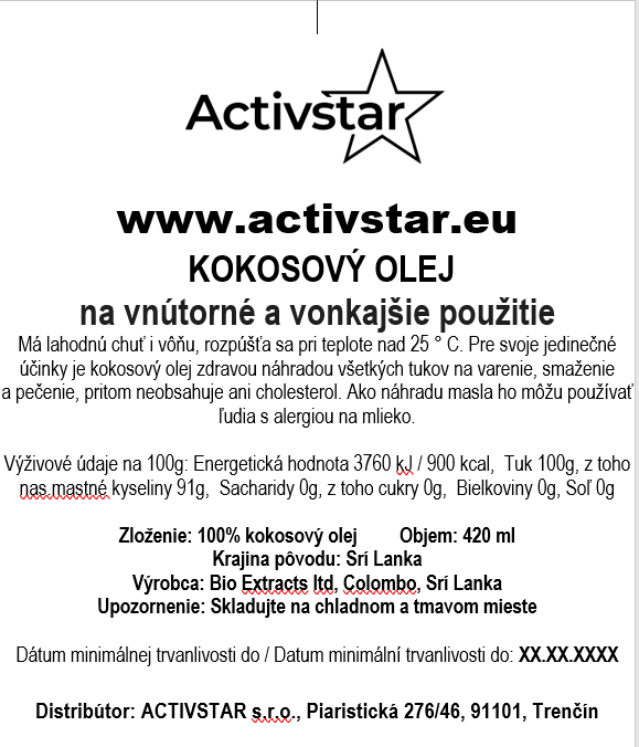 High quality 100% coconut oil with a mild taste and pleasant aroma. Naturally melts at temperatures above 25 °C and is ideal for everyday use in the kitchen and in body care.